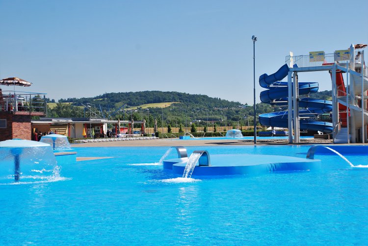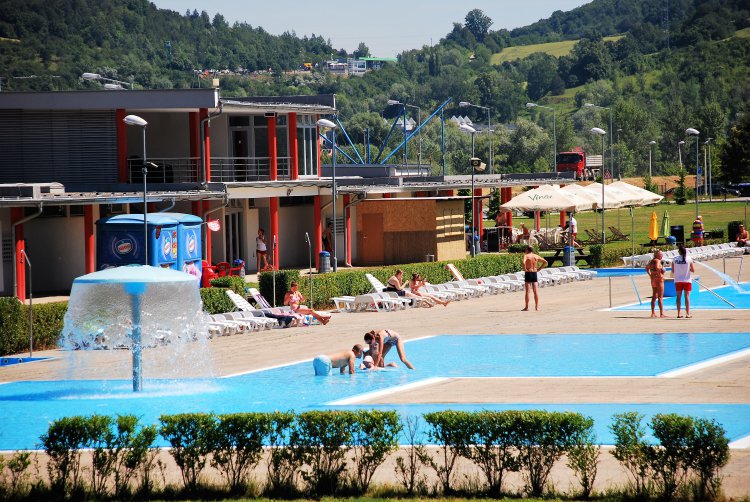 Městské koupaliště v Trenčíně Nabízí bohaté možnosti relaxace i sportovního vyžití. Najdete zde 2 bazény s teplotou vody až 29 °C a menší wellness centrum.