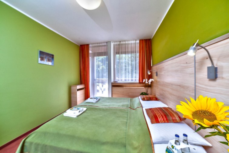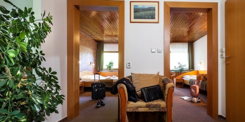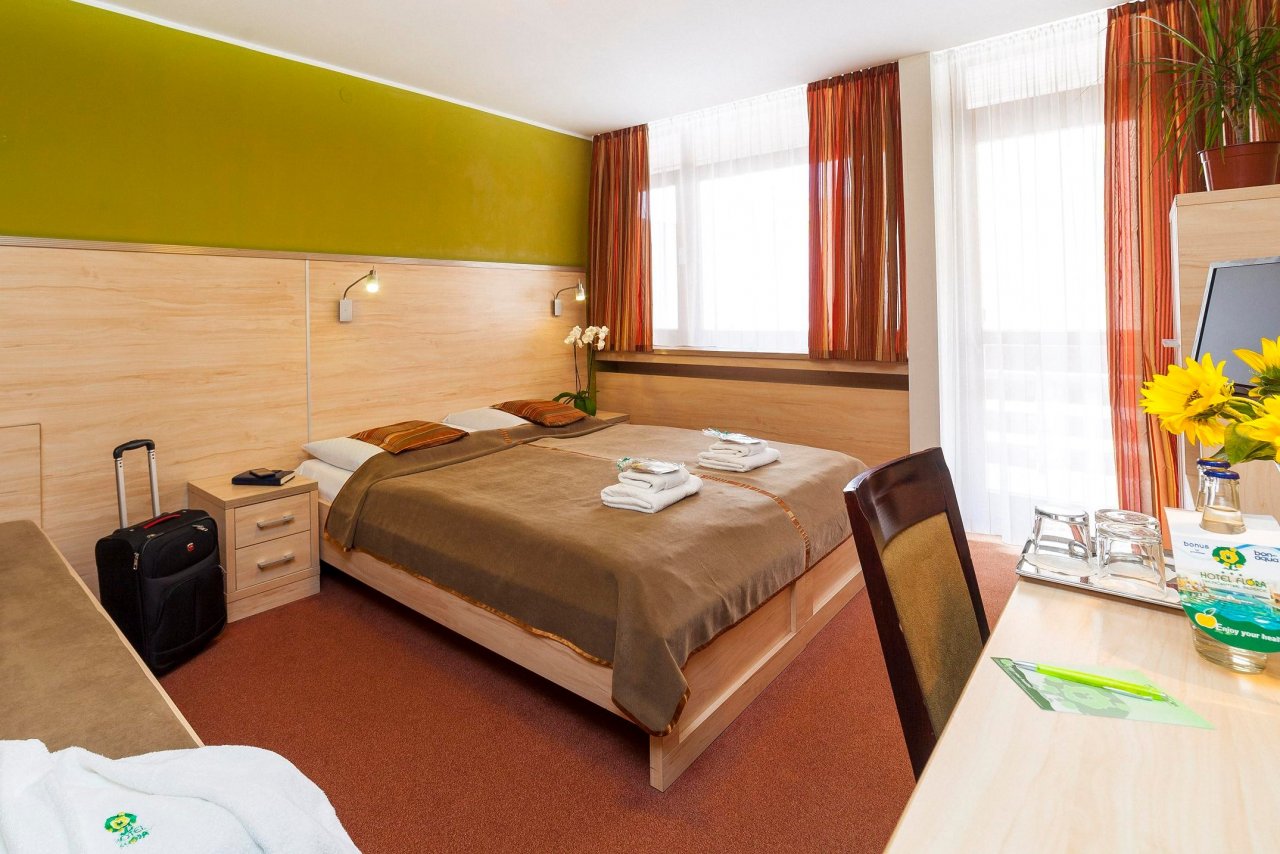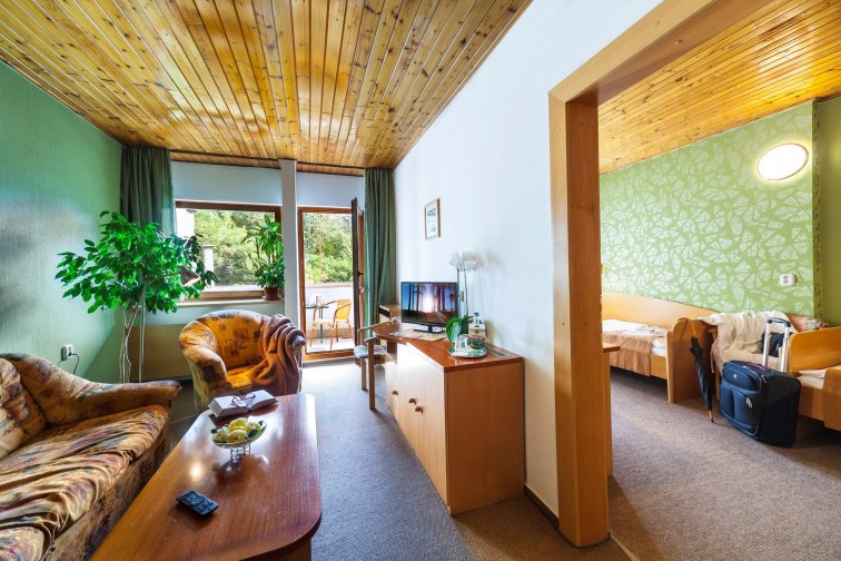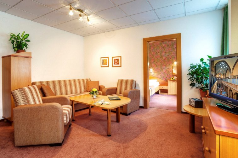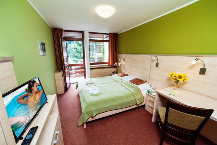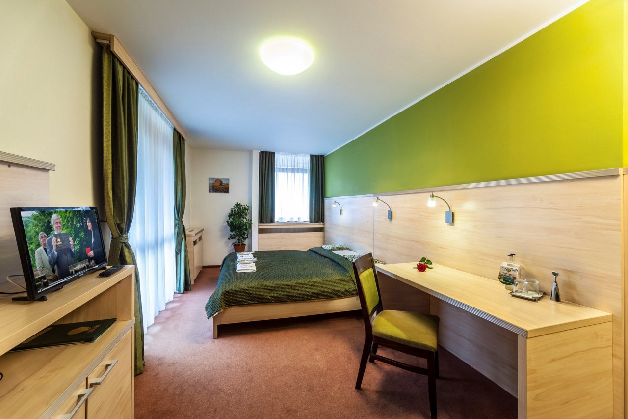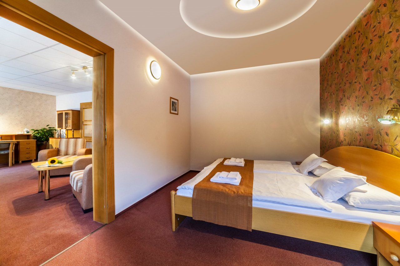 Business apartmán nabízí ubytování pro dvě osoby. Je zde také možnost přistýlky. Kromě standardního vybavení je k dispozici vana a lednice. Obývací pokoj nabízí kromě pohodlné pohovky prostor pro práci a prostorný psací stůl. Místnost je světlá a krásný výhled do přírody dodává energii do práce. Business suite je vhodný i pro menší školení a školení. Její výhodou je propojení ubytovacího prostoru s konferenčním prostorem. V obývacím pokoji je konferenční stůl pro 8 osob. Na požádání lze apartmán vybavit základním školicím vybavením. Popis pokoje: Základní typ pokoje, který je nabízen jako 1-lůžkový nebo 2-lůžkový. Tento pokoj je oproti jiným typům menší, zatímco pokoje Comfort disponují základním vybavením v podobě telefonu, TV, satelitního přijímače, ledničky, minibaru, fénu a wifi připojení. Hosté mají možnost zapůjčení županu do tohoto pokoje. Pokoj nenabízí klimatizaci a možnost přistýlky.
