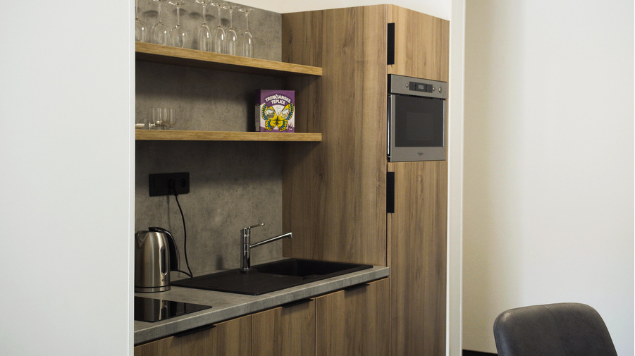 sociální zařízení, klimatizace, rádio, telefon, TV, satelitní přijímač, lednička, fén, koupelna, župan, bidet, rychlovarná konvice, wifiVybavení apartmánu